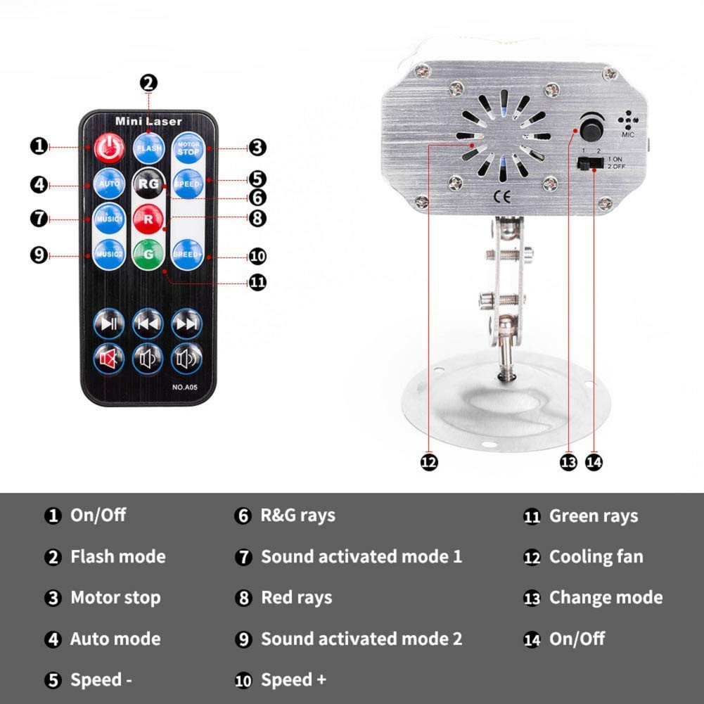 • Powerful voice-activated sensor, support voice control, The laser lights dance / flashing to the music beat. High brightness, High performance.laser light is very bright and the color is vibrant;