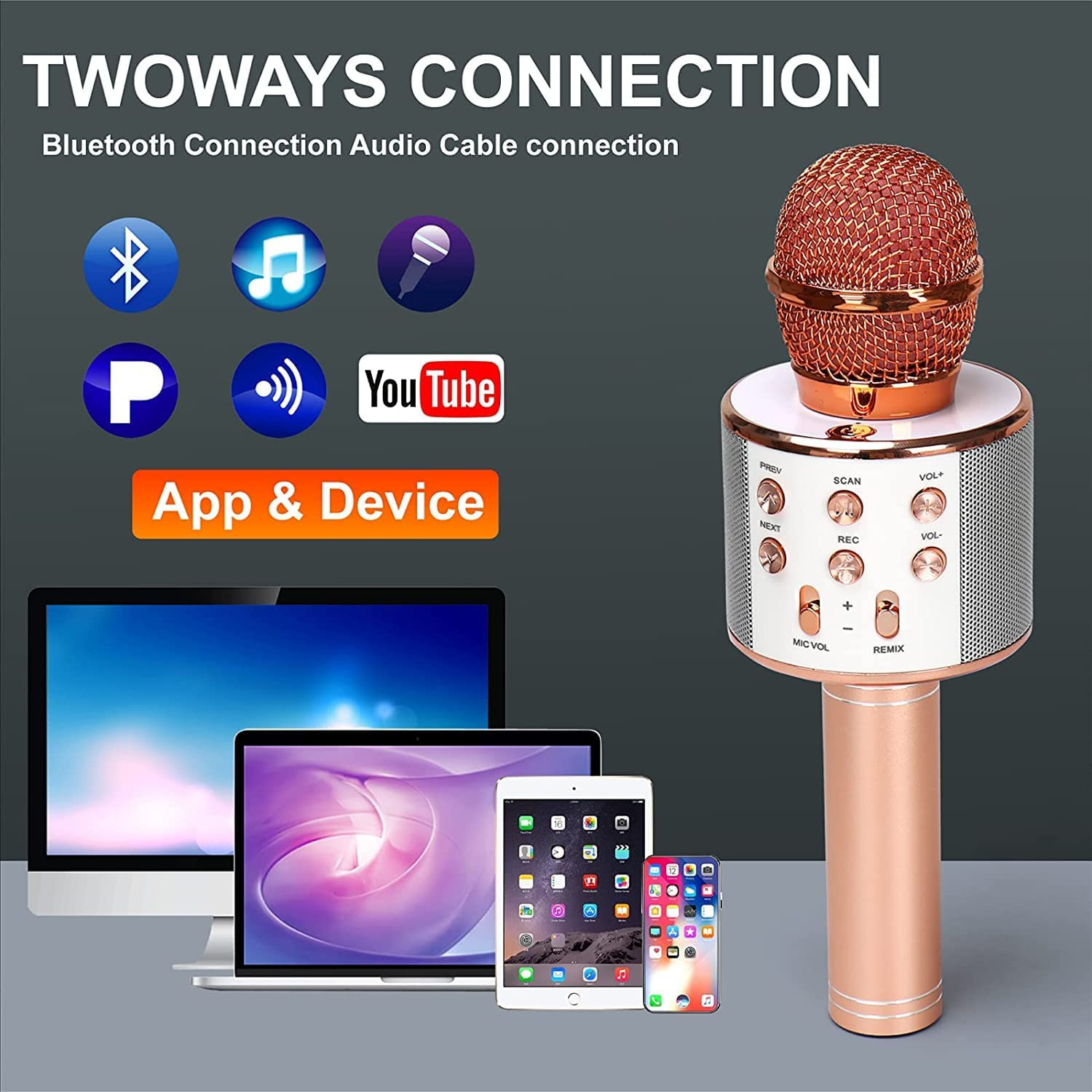Wireless Singing Mic Multi-Function Bidirectional Bluetooth Karaoke Mike with Microphone Speaker for All Smart Phones iOS/Android, Wireless Microphone