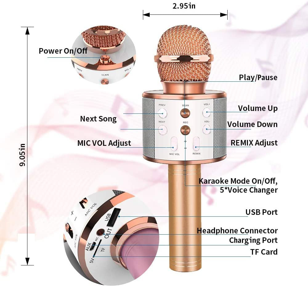 • Built-in 1800mAh rechargeable battery, this Bluetooth karaoke wireless microphone can last 6 hours of continuous use in a full charger.