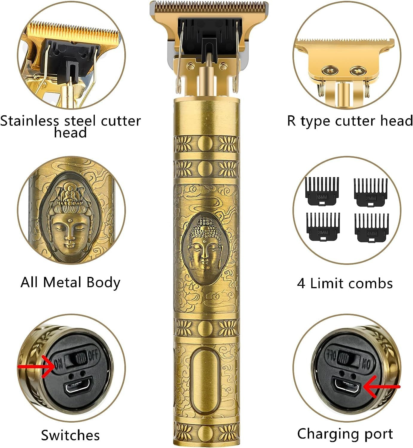 • 【MEN'S GROOMING KIT】: Equipped with 4 kinds of guide combs (1.5mm, 2mm, 3mm, 4mm) of different length,suitable for trimming inch head,pattern,et.Professional cordless clipper for men to cut their beard or hairs at home or travel. Also, be a professional barber trimmer kit to be used in a barbershop.