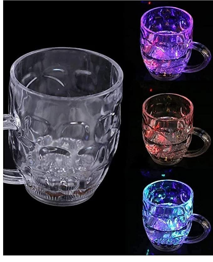 • Imagine holding a luminous Mug in your hand, where the whole mug, and the beverage inside, spin with many colorful lights! This light-up LED mug is made of a high quality, safe, clear acrylic, with replaceable batteries.