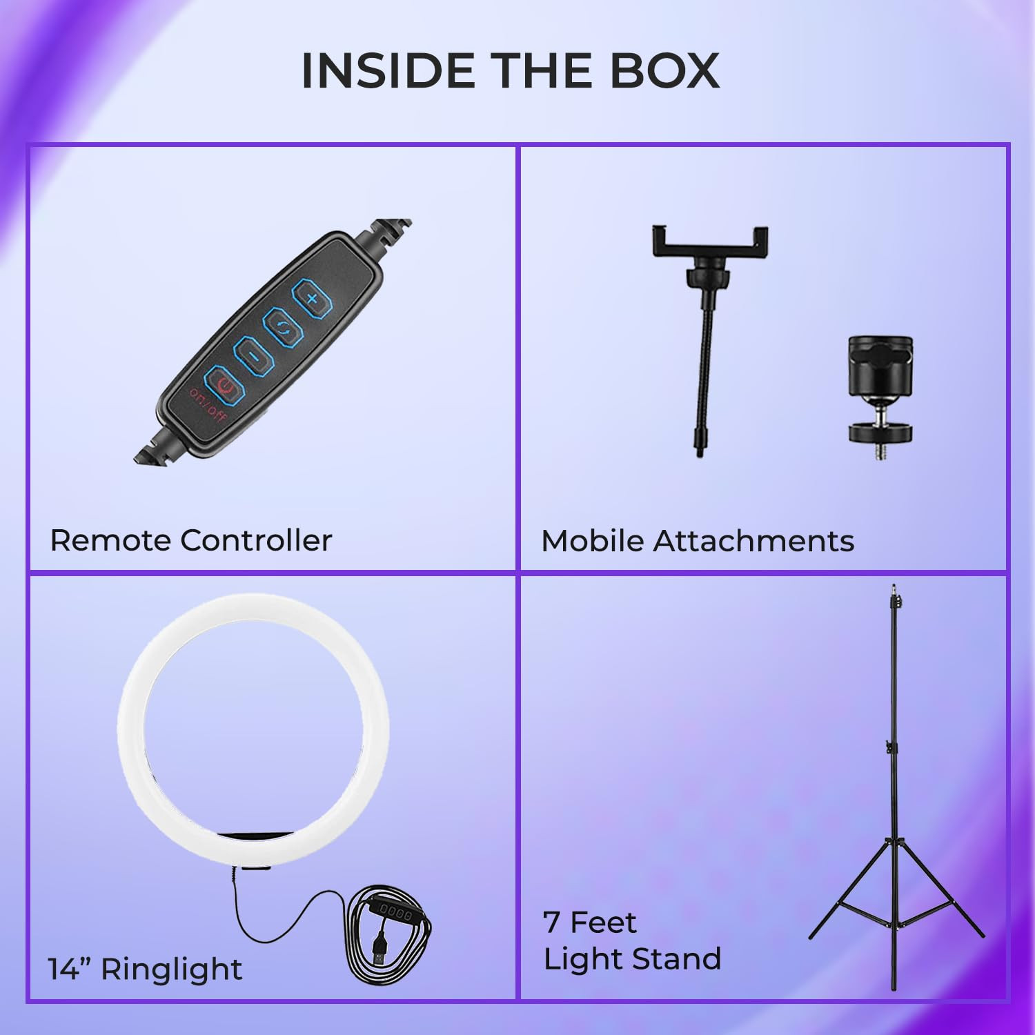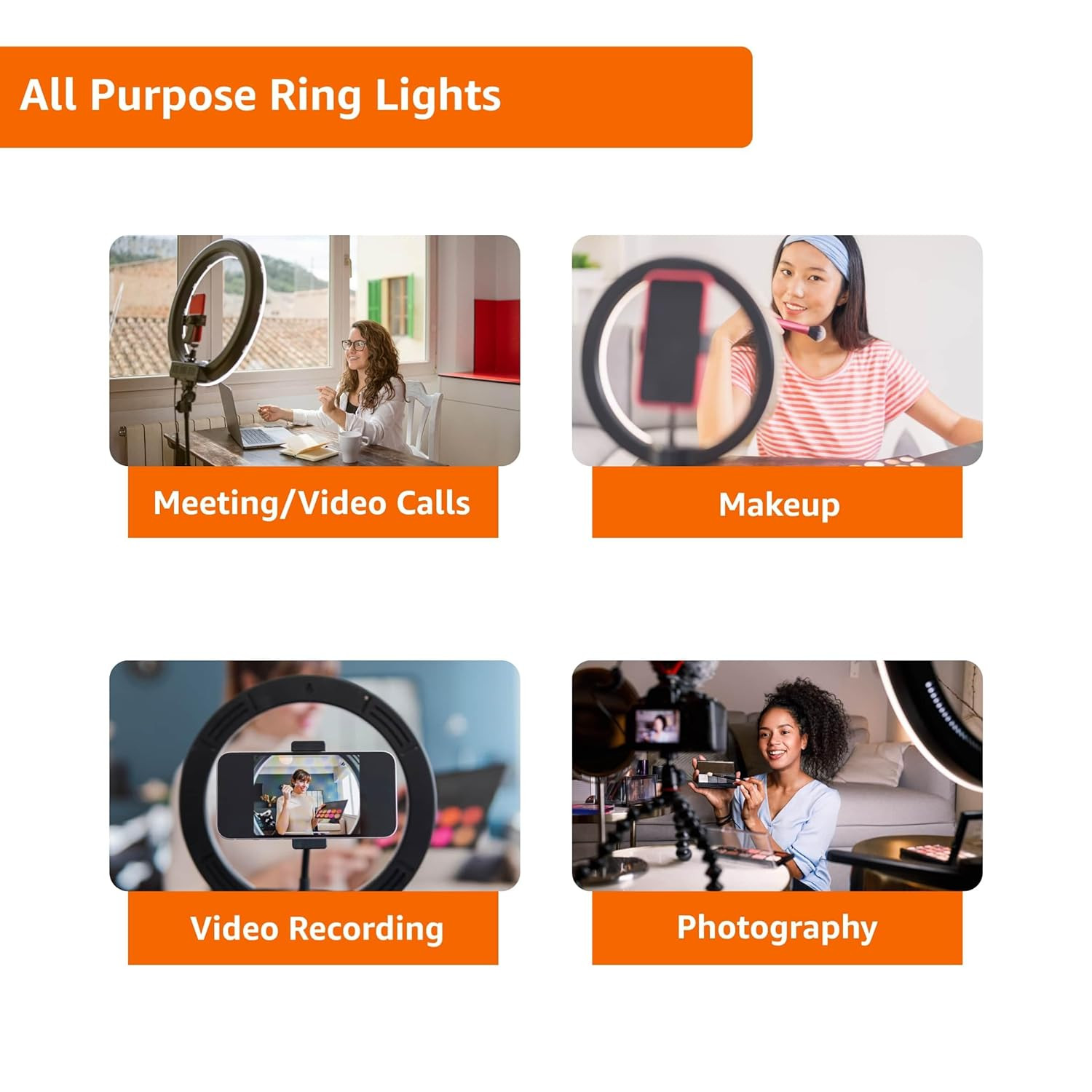 • PHONE HOLDER AND 7"feet tripod -  Ring Light has a rotating (360 degrees) phone holder and a retractable tripod that effortlessly helps you capture different levels of brightness and angles of lighting! The phone holder is suitable for most smartphones.