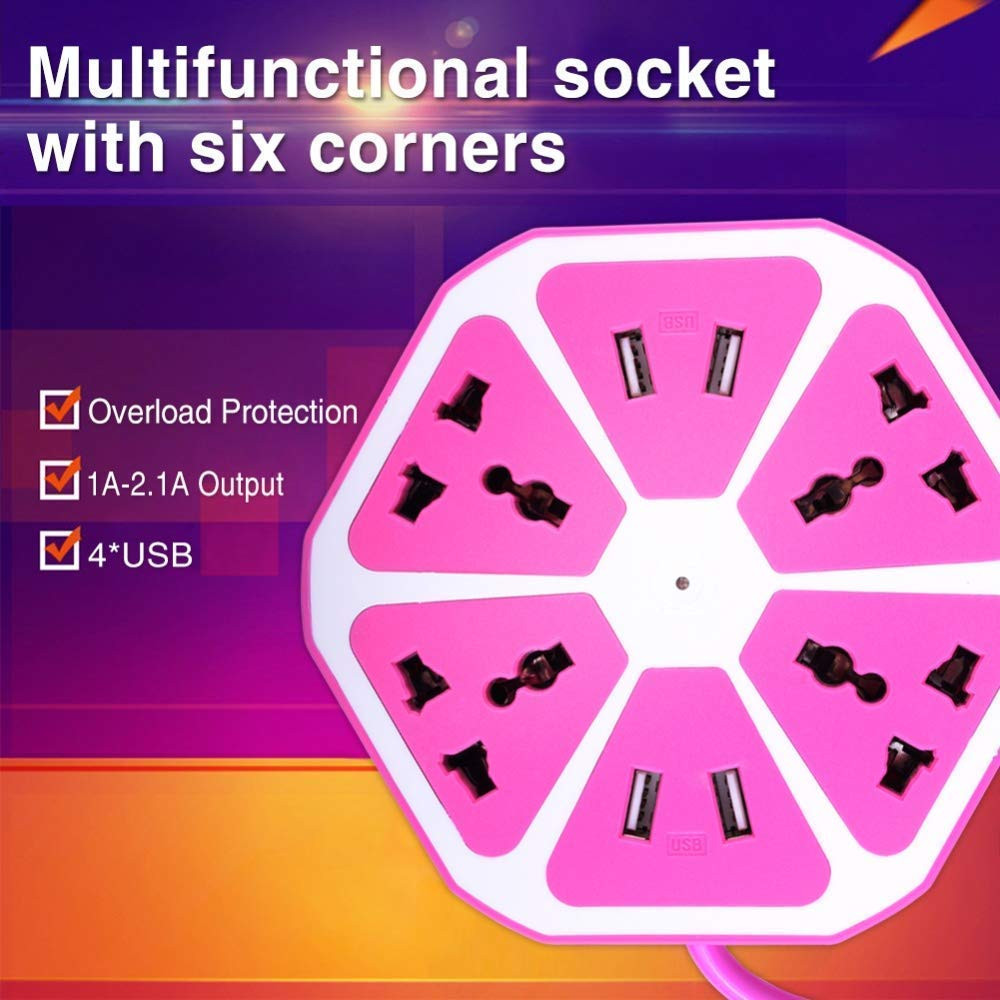 Electrical Hexagon 4 Socket Extension Board with 4 USB Port